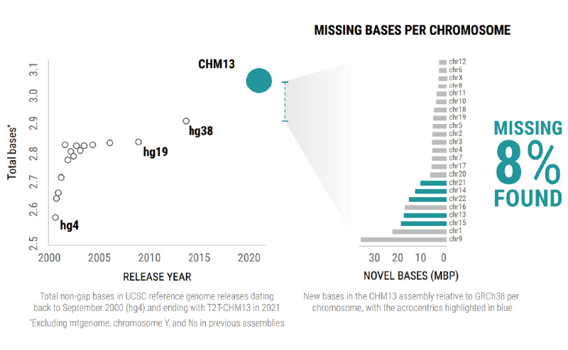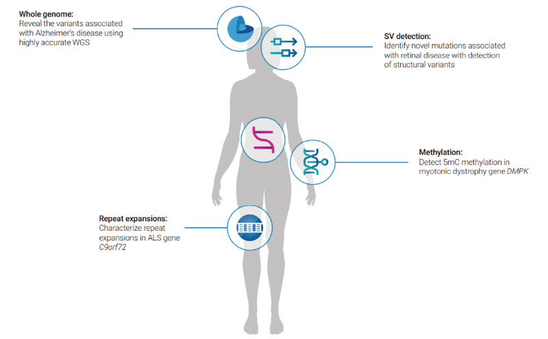 第三代定序的 PacBio HiFi Reads,兼具有更長讀長 (10~25kb) 且 >99.9% 高準確度的特性,其特點在於能夠更完整地覆蓋基因組,特別是那些複雜的重複序列區域,例如著絲粒、端粒和高度同源的基因家族,同時補足了以往在次世代定序無法獲取的 8% 的基因組區域。除了可完成基因組裝外,長讀長定序還可檢測單核苷酸變異 (SNPs)、插入及缺失變異 (Indels)、結構變異 (SVs)、重複性區域變異 (Repeats),拷貝數變異 (CNVs)、以及甲基化變異 (Methylation),並應用在更多關於人類疾病、人群遺傳學、腫瘤基因組學以及個人化醫療等研究上。