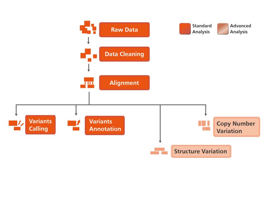 對於已知序列物種之全基因體進行定序,第一步就是將這些定序完成的短片段與參考序列進行比對,透過軟體找出變異 (Variants) 與其改變之型態 (SNPs or InDels),便可知道其改變是否會造成胺基酸變化;藉由 NGS 技術可快速了解基因型 (Genotype) 與表現型 (Phenotype) 之間的關連性為何,對於人類或動植物等方面之研究將更為直接而快速。